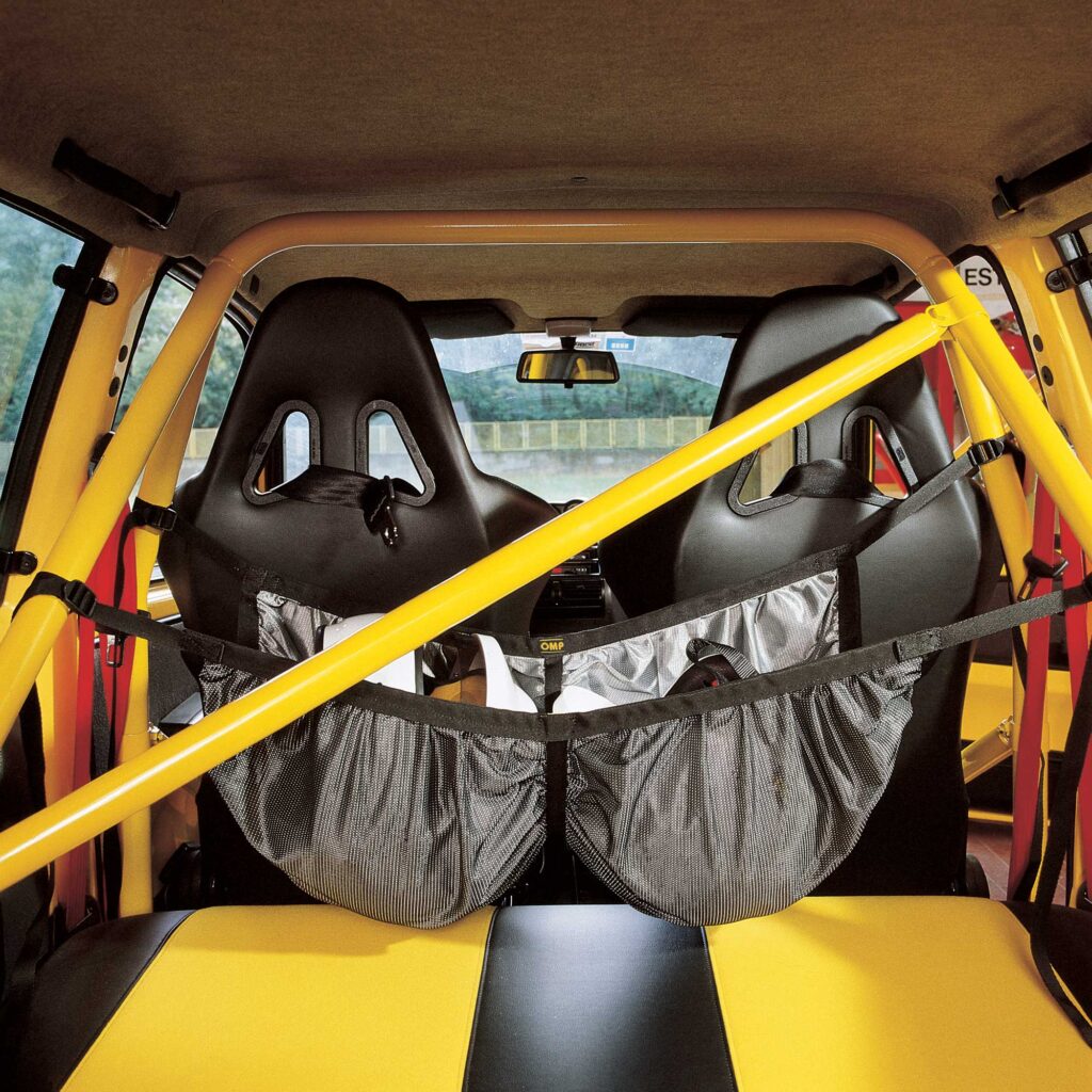Polyester helmet carrying net. Suitable for all cars, can hold 2 helmets.