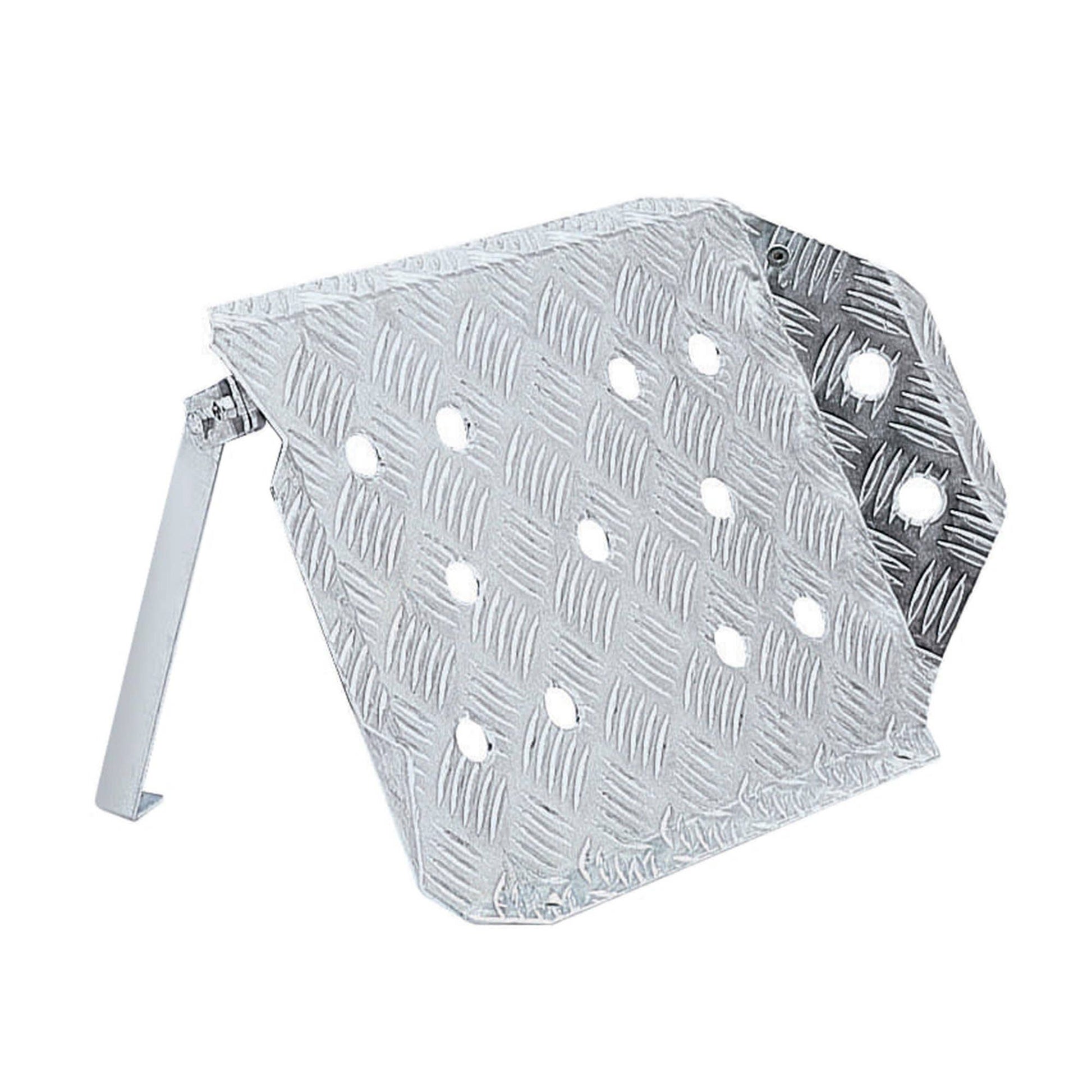 Footrest collapsible in the event of a crash. Embossed anodised aluminium