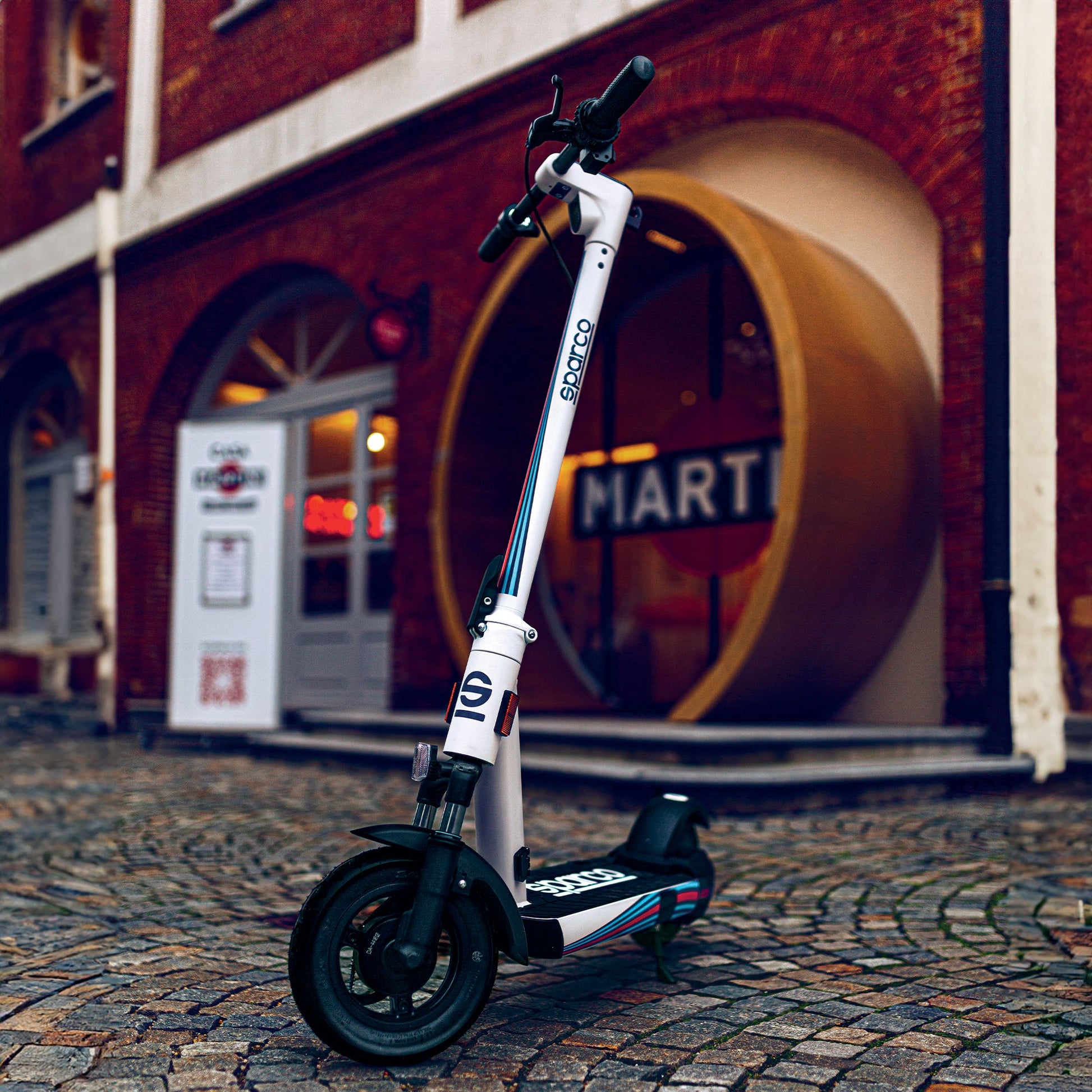 The powerful Sparco MAX-S2 electric scooter with 500 W motor customised with Martini Racing livery