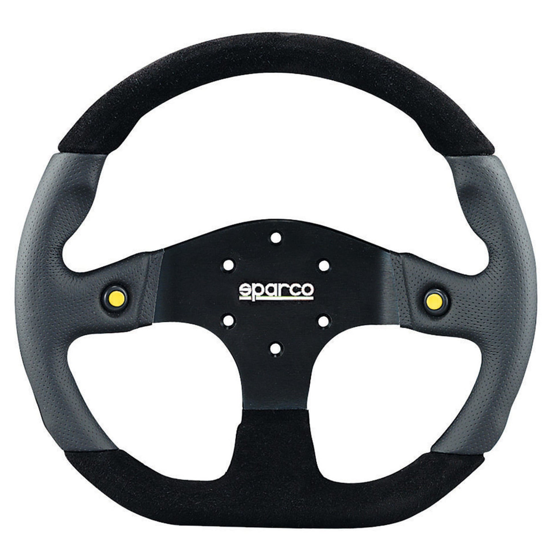 The Sparco 3-spoke, flat L999 Alcantara sports steering wheel has a diameter of 330 mm.