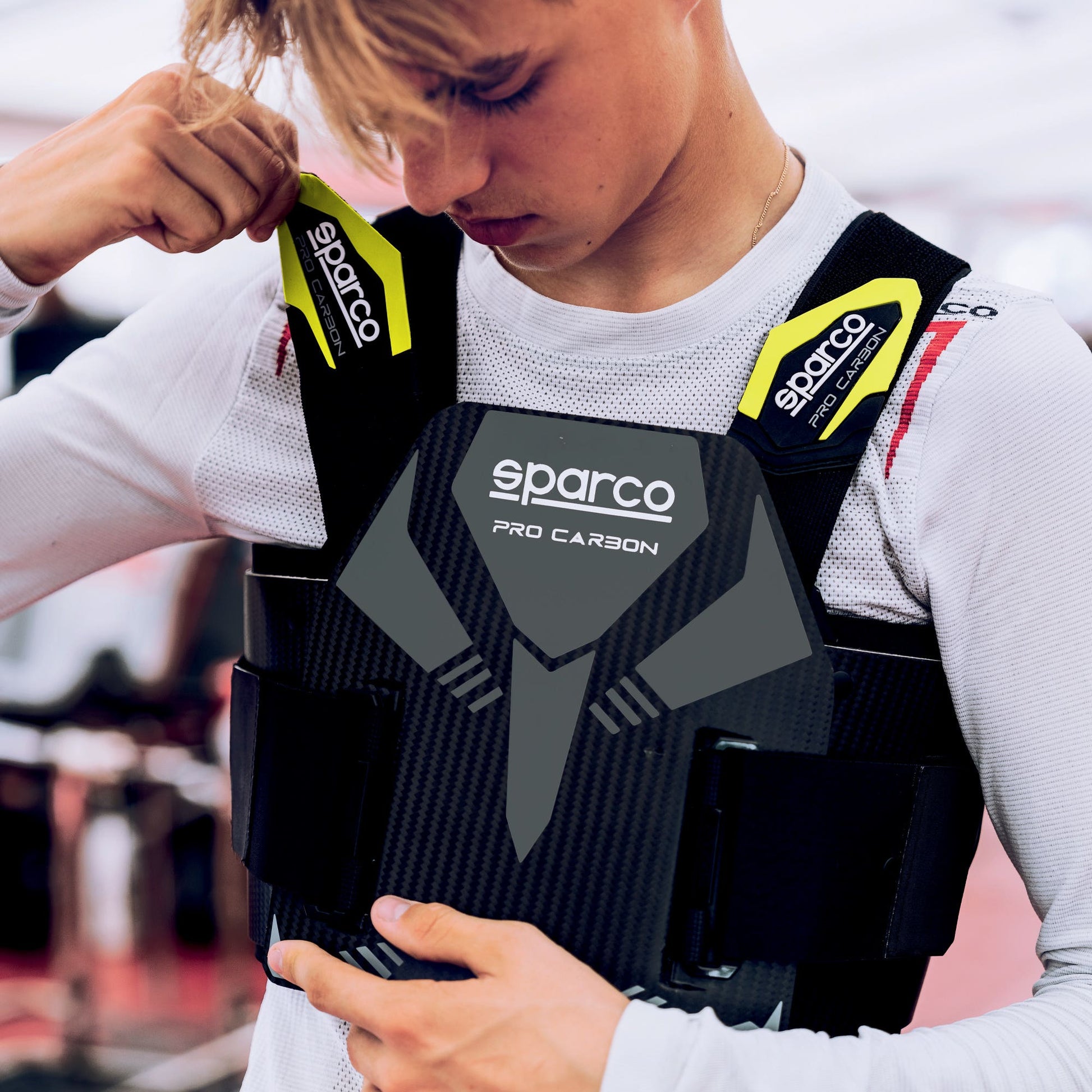Shells made with innovative flexible carbonkevlar for maximum comfort, lightness and fit on the driver Internal foam covered in hypoallergenic fabric and with ventilation channels Automatic elastic adjustment of the side straps and shoulder straps during use Possibility of customizing shoulder's pullers and sternum pad stickers with kits supplied in the package in fluorescent yellow and red. Ultra-flat front closure system. Flexible back insert to adapt while driving.