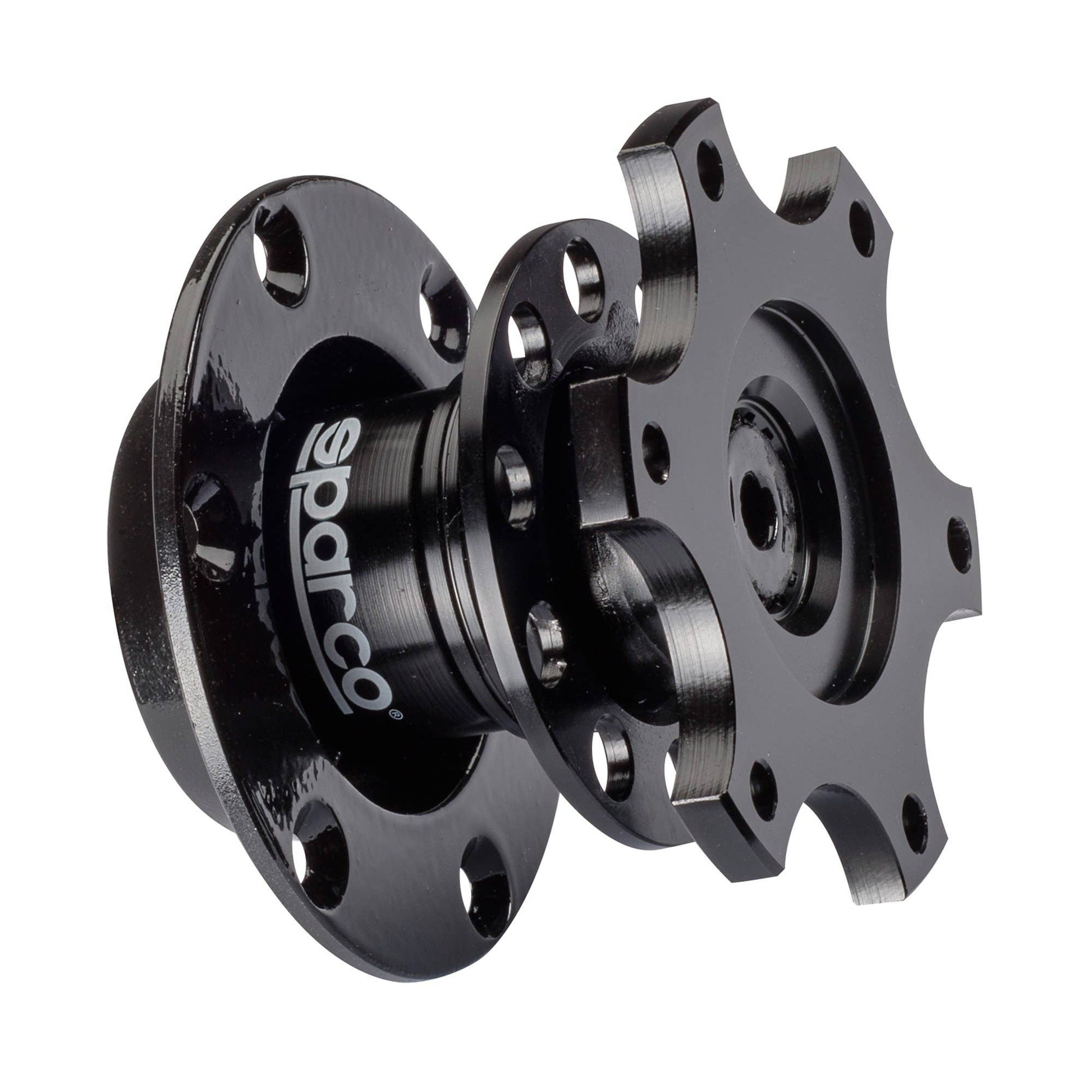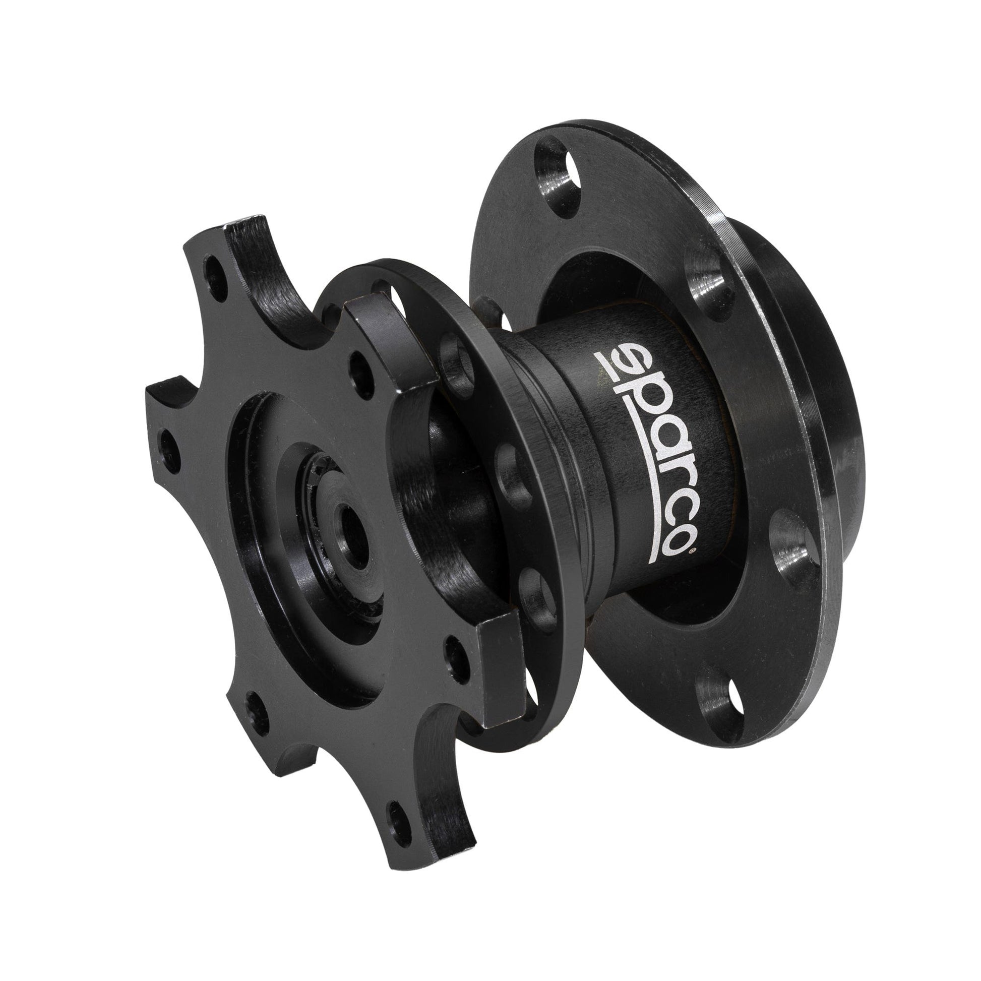 6-slot PCD 6x70 mm steering wheel connection flange designed with no need for welding to steering column with a flange that can be connected to normal Sparco boss.